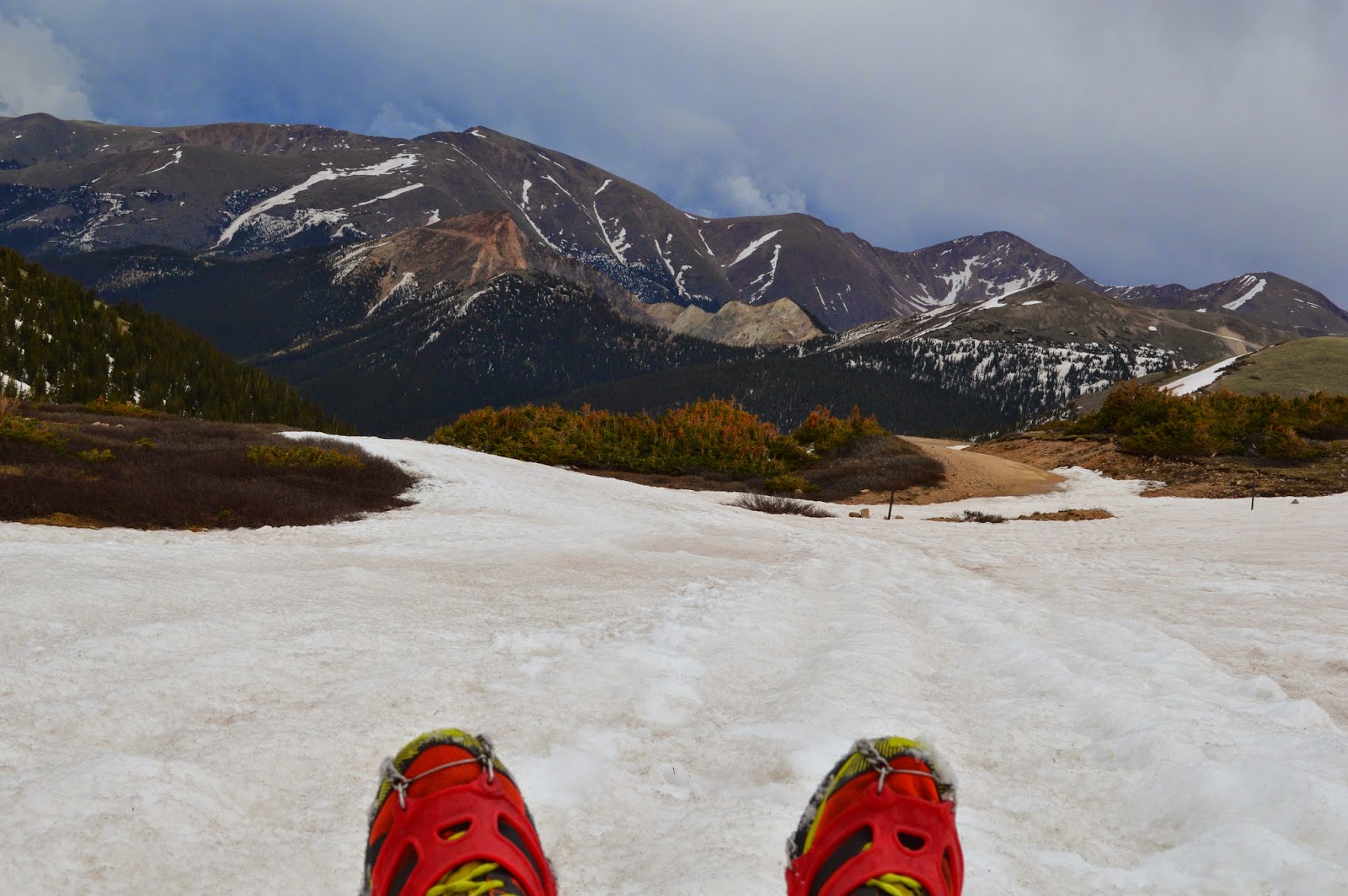 After the race I drove over to Jones Pass, which is on the CDT. Sara and I had hiked through this area last year, and I wanted to see it again. The bowl was completely snowpacked so I got to use my microspikes, and, because I had them, used my RnR 22 Snowshoes, although I was done running for the day. Returning to portions of the CDT was interesting. Not having Sara with me didn't feel right, because we had done spent every minute of the hike together and I think part of me recognized that anything close to the CDT should be shared with her. It was also great to be back, though. I love being up high and despite Sara not being there it was great to be able to tromp around in the snow above 12,000' again.